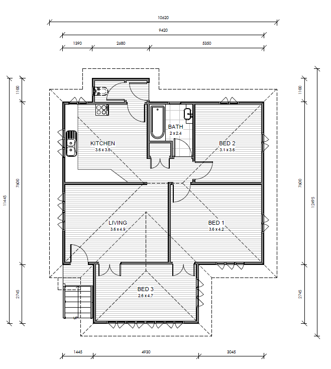 This Great Home Could Be Yours For $143,000.00 Supplied and delivered within 100 kilometres and stumped lowset at 1200mm (4 foot) in height using SHS galvanised steel columns.